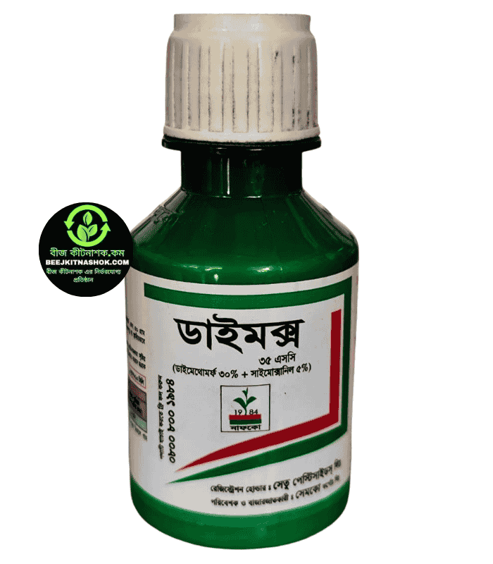 ডাইমক্স ৩৫ এসসি (Daimox 35 SC) নাফকো লিমিটেডের একটি শক্তিশালী ও আধুনিক ছত্রাকনাশক, যার সক্রিয় উপাদান Dimethomorph 30% + Cymoxanil 5% SC। এটি সিস্টেমিক ও কন্টাক্ট উভয় ধরনের কার্যপ্রণালীতে কাজ করে, ফলে গাছের ভেতর ও বাইরে থেকে রোগ দমন করে দীর্ঘস্থায়ী সুরক্ষা প্রদান করে।